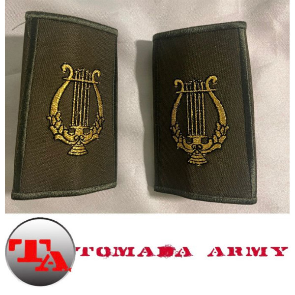Tubolari fanfara alpina colore verde oliva, ricamati.